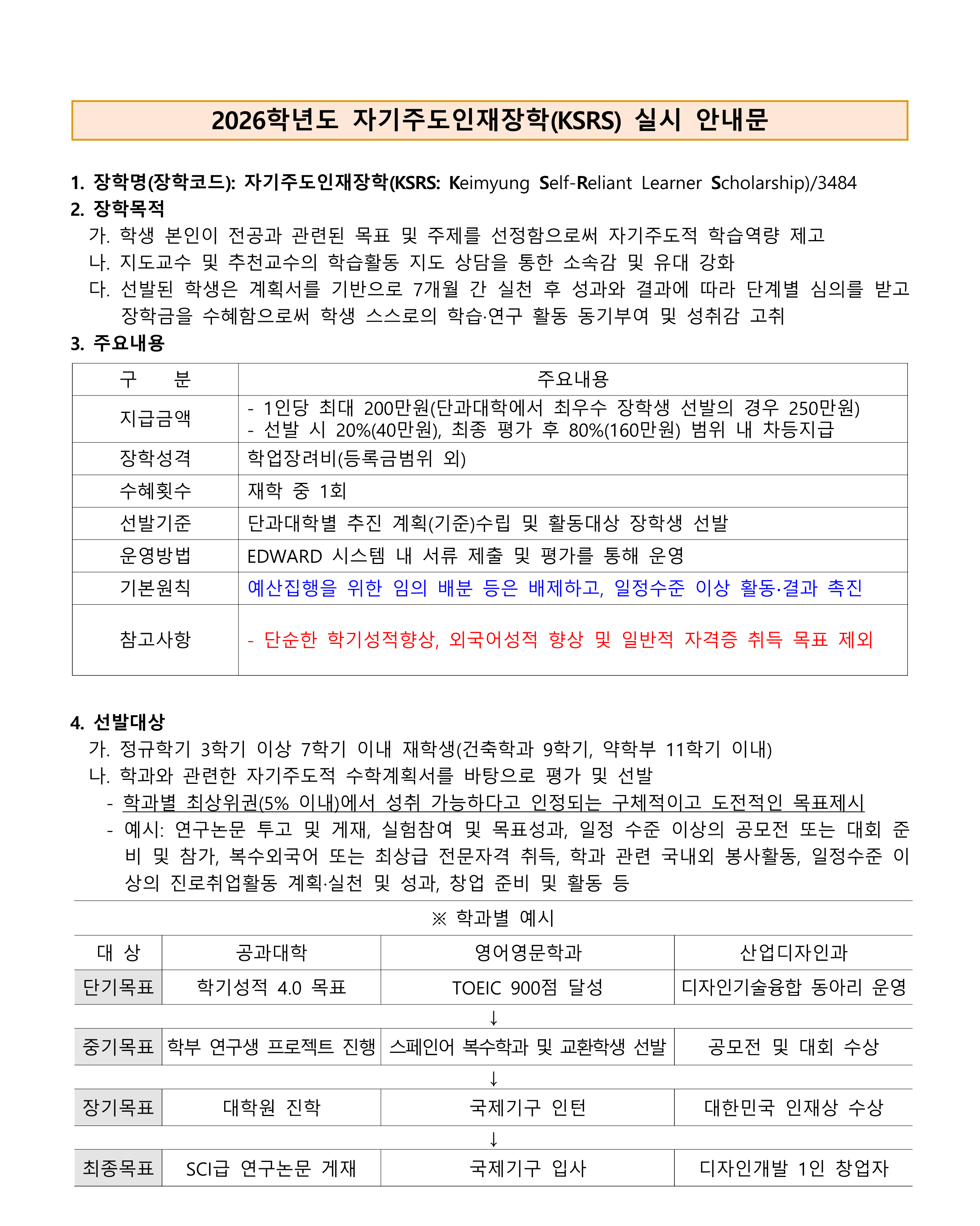 2026학년도 자기주도인재장학(KSRS) 실시 안내문