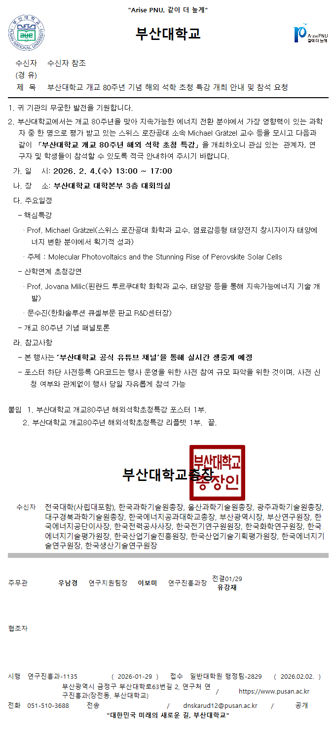 부산대학교 개교 80주년 기념 해외 석학 초청 특강 개최 안내